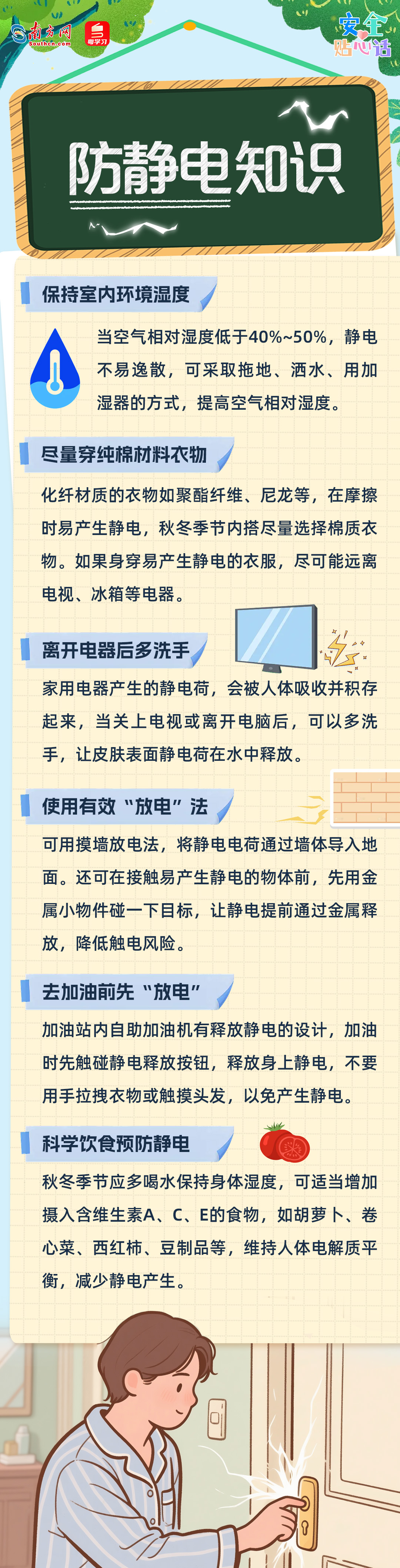 天干物燥的秋冬季节很容易产生静电,雨雪稀少,安全安全